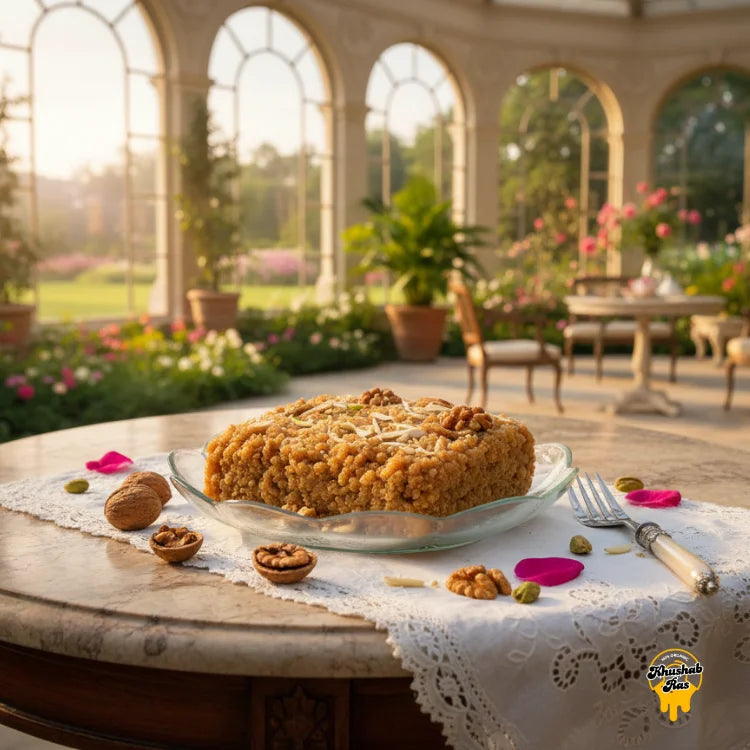 A rich, traditional milk-based sweet infused with crunchy walnuts, pure desi ghee, and slow-cooked ingredients for a deep, aromatic flavor.